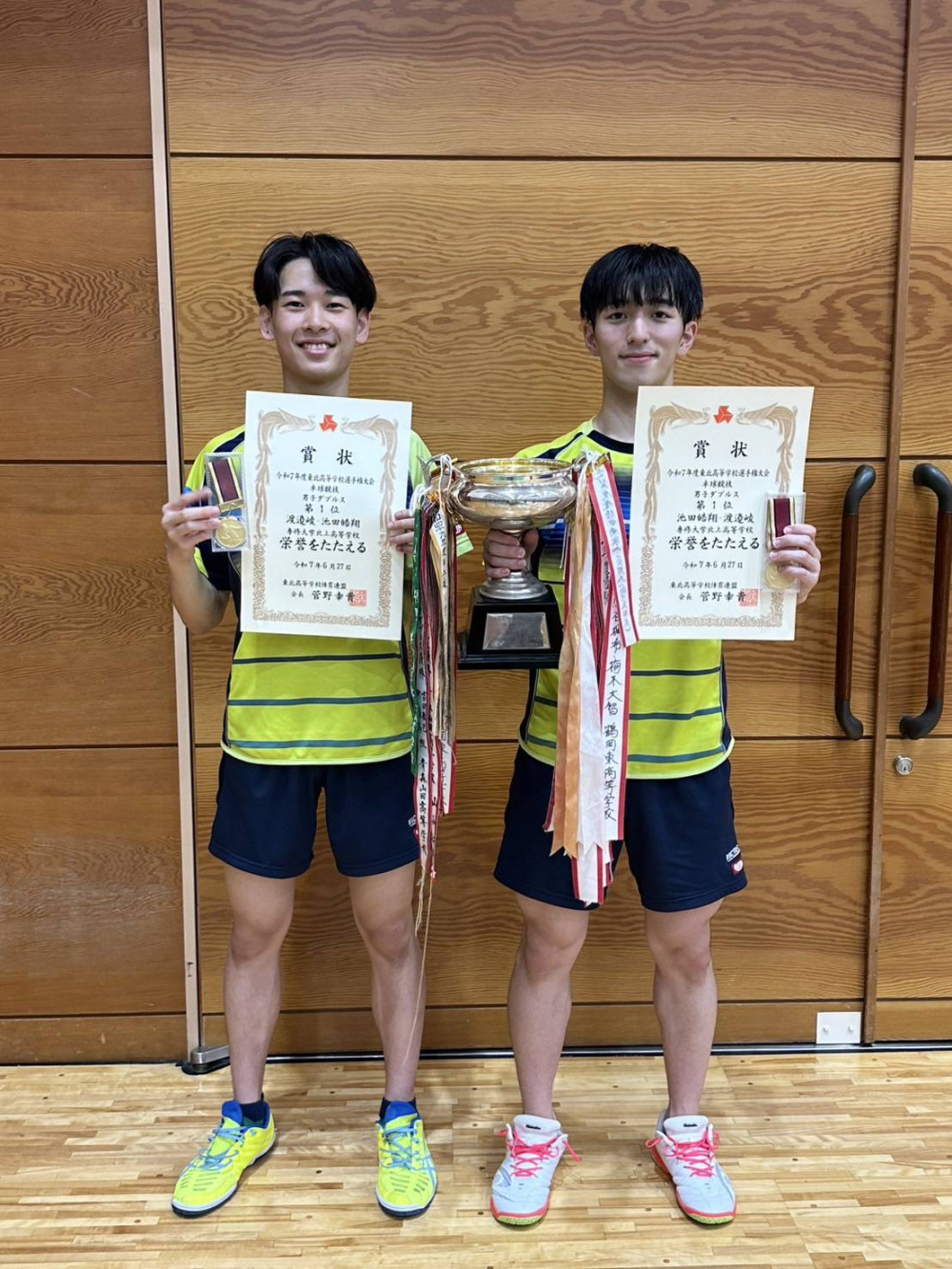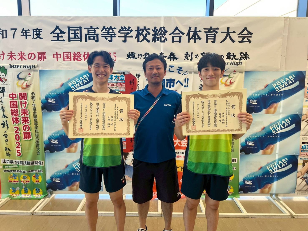 渡邉 崚 ・ 池田 皓翔 組(専大北上高校)が第94回全国高等学校卓球選手権大会(インターハイ)・2年連続で男子ダブルス第5位に入賞しました!
