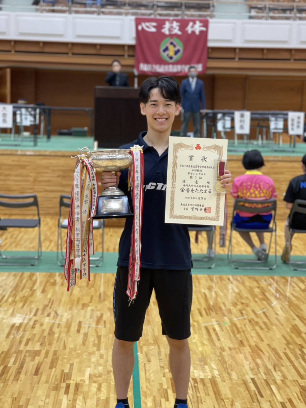 〔男子学校対抗と男子ダブルス(渡邉・池田 組)は2連覇、男子シングルスは渡邉選手が優勝〕